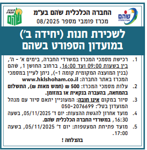 החברה הכלכלית שוהם - מכרז פומבי מס' 8/2025