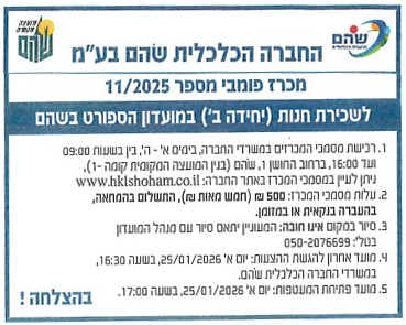 החברה הכלכלית שוהם - מכרז פומבי מס' 11/2025