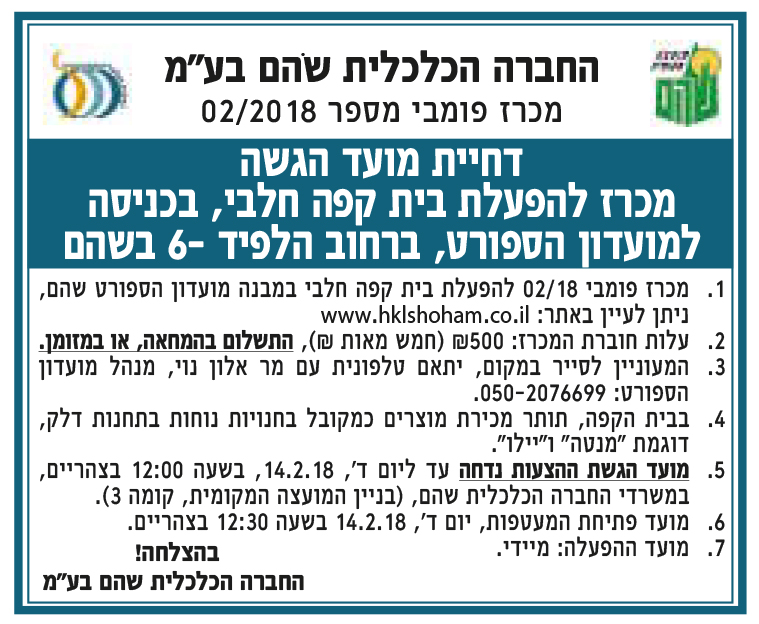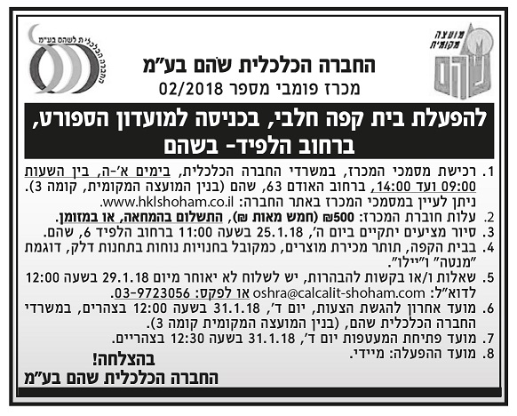 החברה הכלכלית שֹהם בע"מ - מכרז פומבי 02/2018