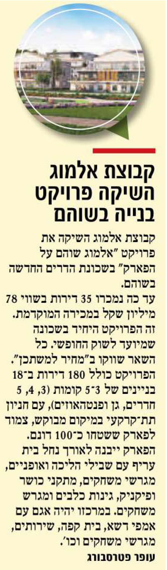 קבוצת אלמוג השיקה פרויקט בניה בשוהם