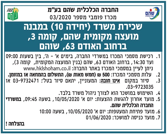 החברה הכלכלית שֹהם בע"מ מכרז פומבי 03/20