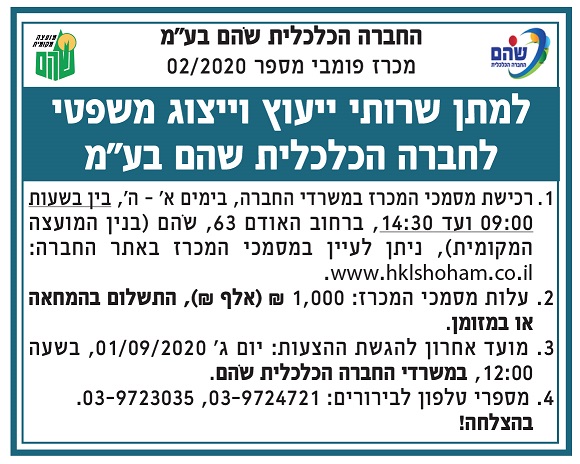 החברה הכלכלית שֹהם בע"מ מכרז פומבי 02/20 |