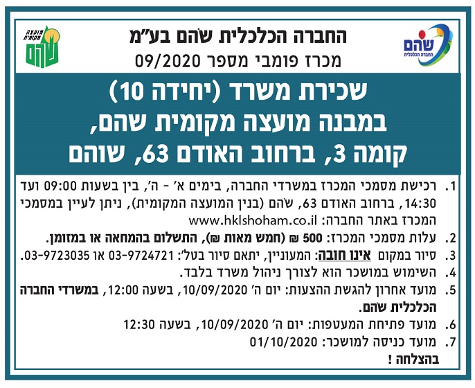 החברה הכלכלית שֹהם בע"מ מכרז פומבי 09/20