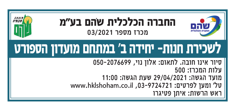 החברה הכלכלית שוהם בע"מ - מכרז מס' 03/2021