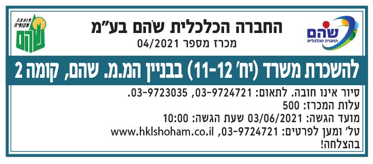 החברה הכלכלית שוהם בע"מ - מכרז מס' 04/2021 |