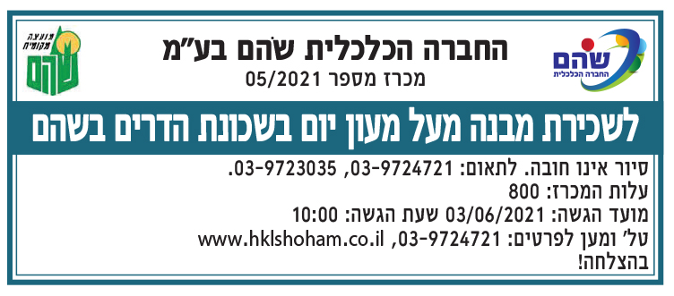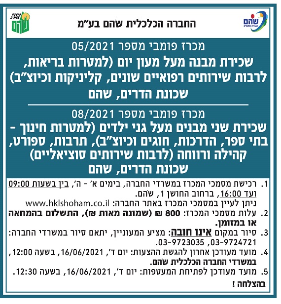 החברה הכלכלית שוהם בע"מ - מכרז מס' 05/2021 |