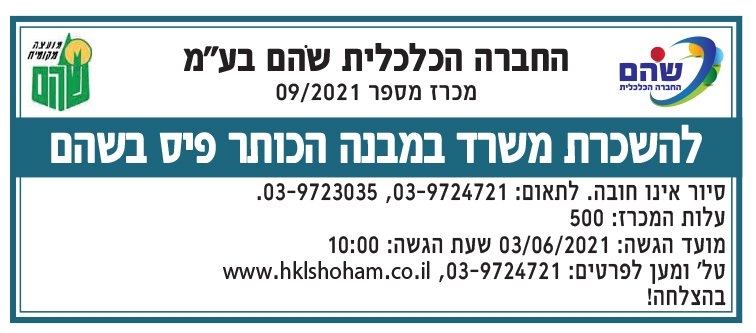החברה הכלכלית שוהם בע"מ - מכרז מס' 09/2021
