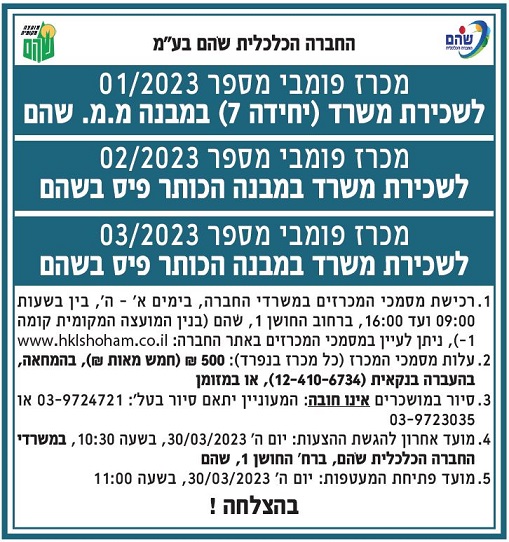 החברה הכלכלית שוהם בע"מ - מכרז פומבי 03/2023