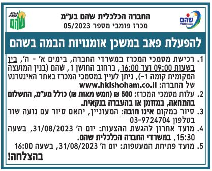 מכרז פומבי 05/2023 להפעלת פאב במשכן אומנויות הבמה בשוהם