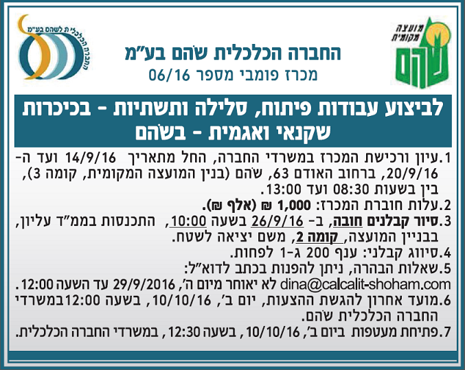 החברה הכלכלית שֹהם בע"מ - מכרז פומבי מספר 06/16 |