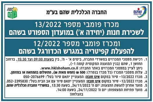 החברה הכלכלית שוהם בע"מ - מכרז פומבי 12/2022 |